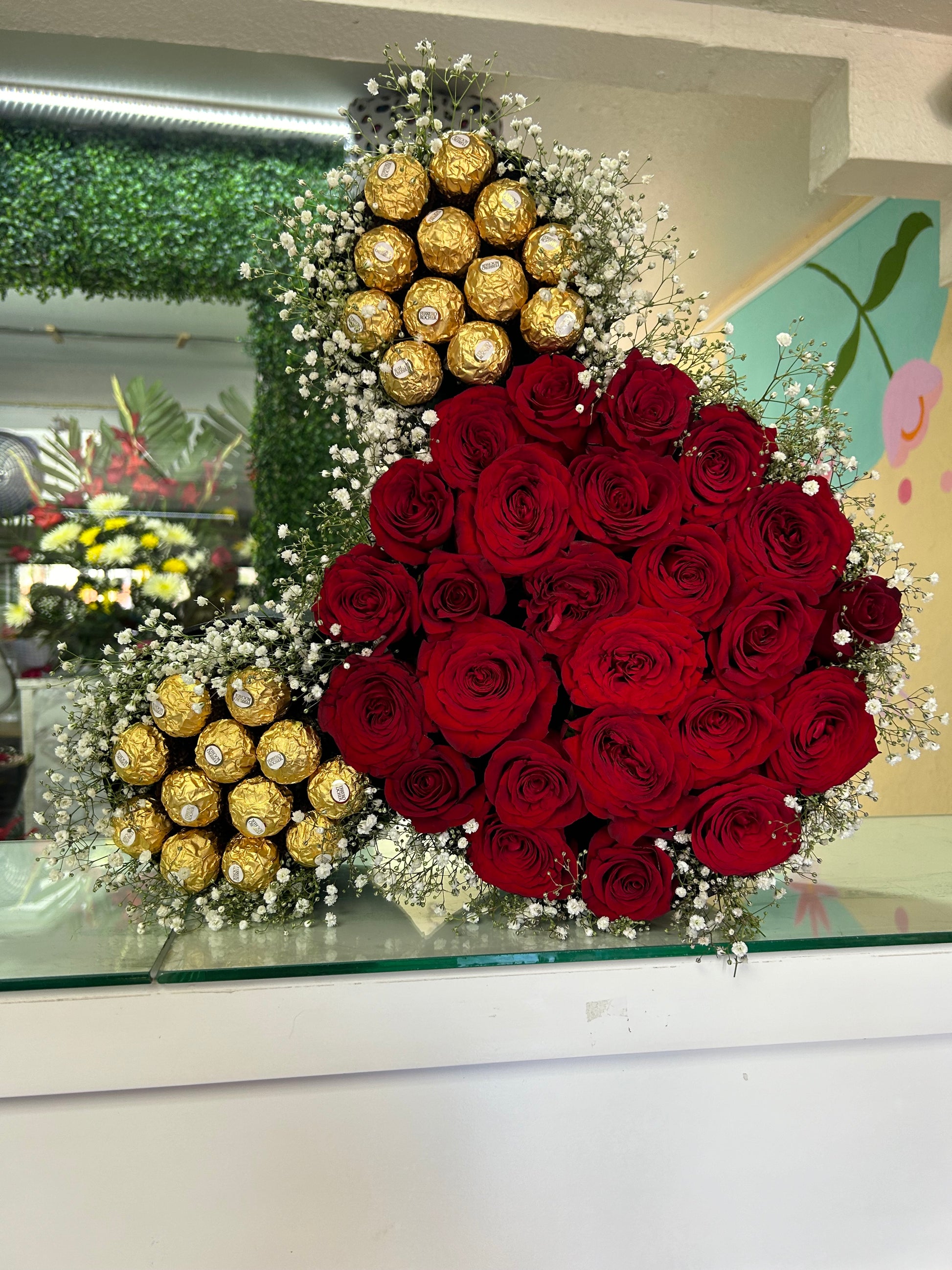 Base madera en forma Mickey mouse con 24 rosas y Ferrero rocher